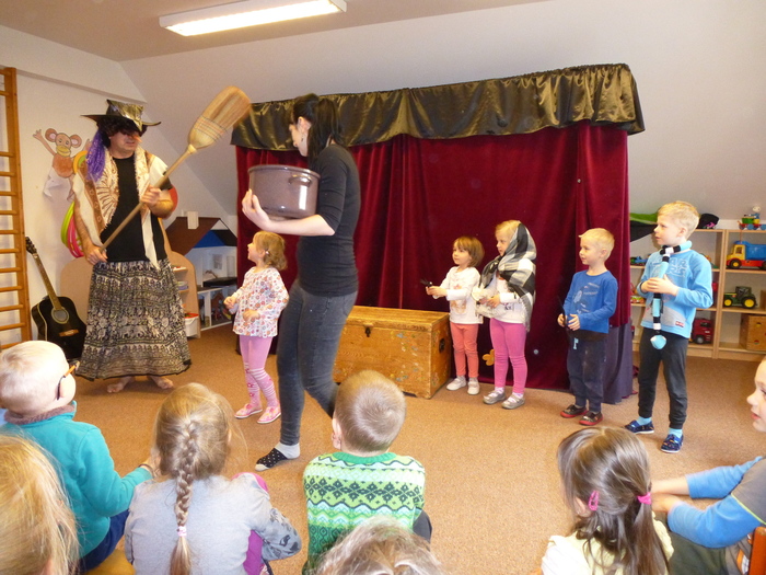 Možná už vám doma děti vyprávěly své zážitky z divadelních představení, které měly možnost shlédnout ve školce během dubna. Obě vystoupení se nám všem líbila. Pokud vám ještě děti nevyprávěly, podívejte se společně na fotky - určitě si vzpomenou na vlka z kůzlátek a na čarodějnici, která si zlomila koště nad naší školkou.