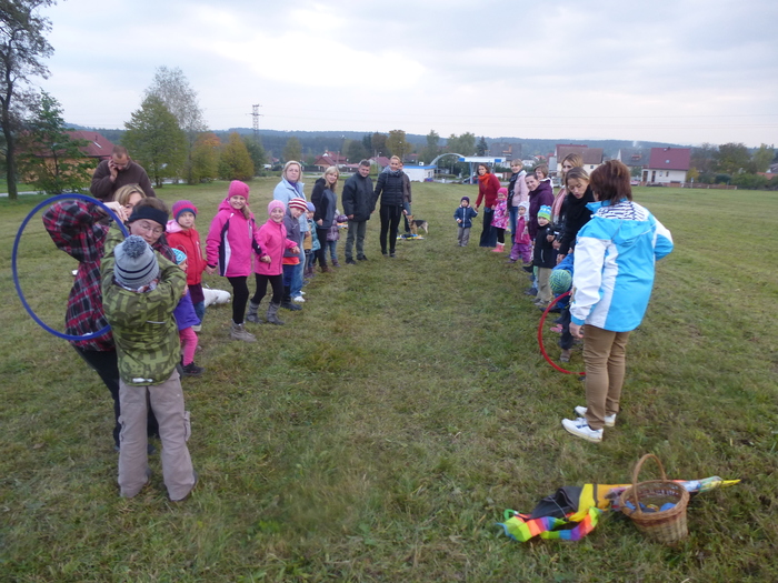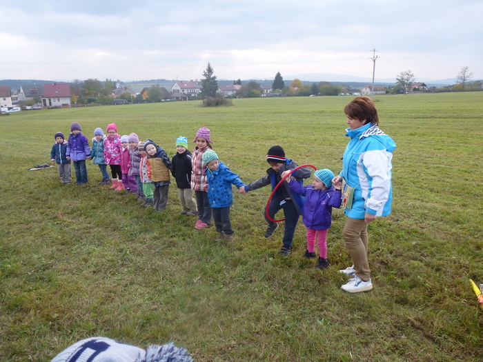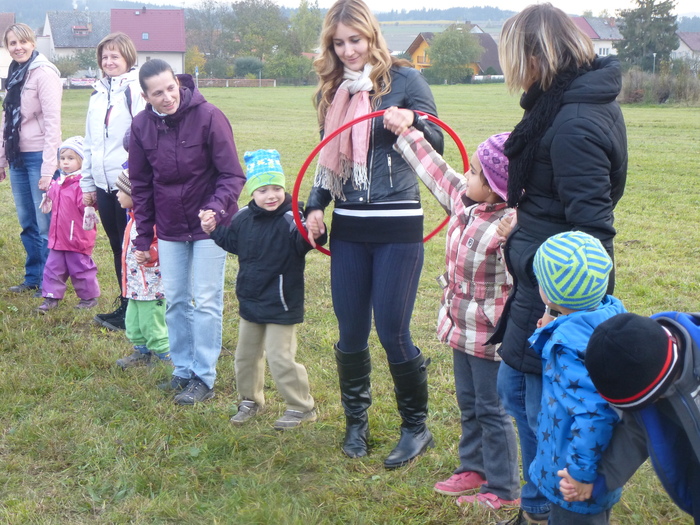 K říjnu patří pouštění draků ve větru. Nám zrovna vítr nefoukal, ale rodiče s dětmi to nevzdali. Trénovali spolupráci při hrách a běh s drakem, tak dlouho a statečně, až někteří draci přeci jen vzlétli. A pro vytrvalce začal dokonce vát i jemný větřík, který vynesl draky úplně na konce provázků :-)