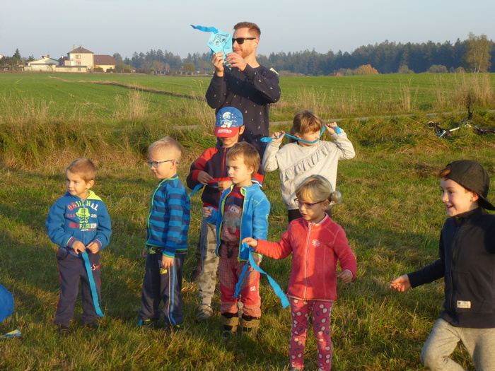 Větru ani dešti neporučíme! A tak to dneska vypadalo, že tu dračí chásku nevypustíme! Děti se moc snažily, vypomohli rodiče a papíroví draci nakonec létali. Zafoukal i vítr, tak jsme se neuběhali. V jednu chvíli bylo ve vzduchu patnáct draků. Když zrovna nefoukalo, dokončily děti draka, kterého vyráběly ve školce a přednesly říkanky, které se naučily. Připravené odměny byly rozdány a mohli jsme se spokojeně rozejít domů.