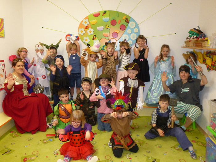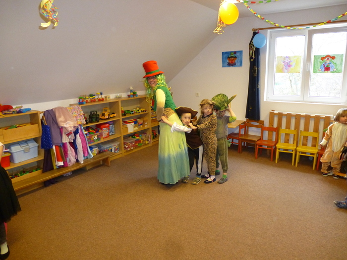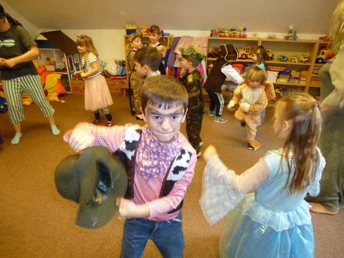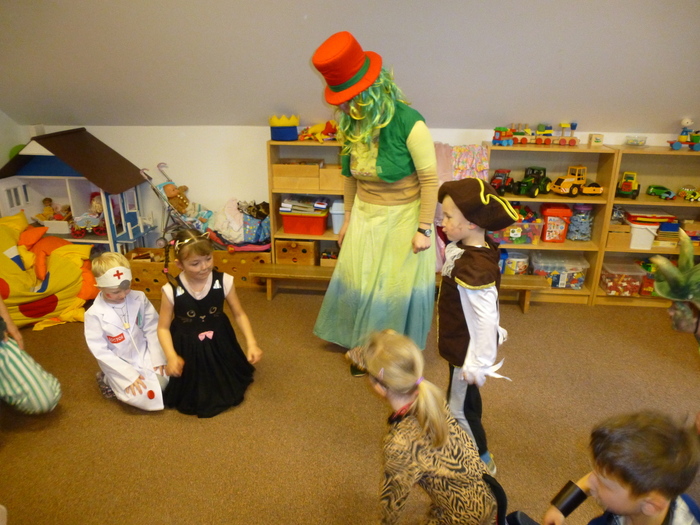 Karnevalové dopoledne začalo promenádou masek a jejich představením. Tančení, soutěže a hry naplnily celou naší školku. Program uváděla vodnice a pomáhal jí pirát a na návštěvu přišla i bludička z kuchyně. Celý den jsme si užili v převlecích a s velkou radostí.