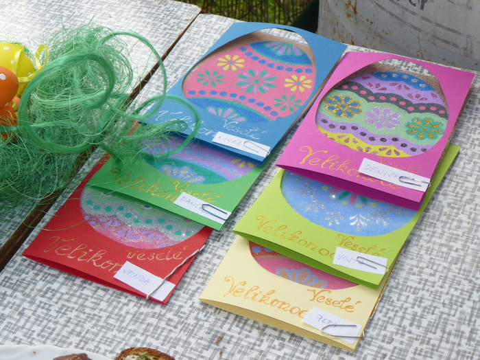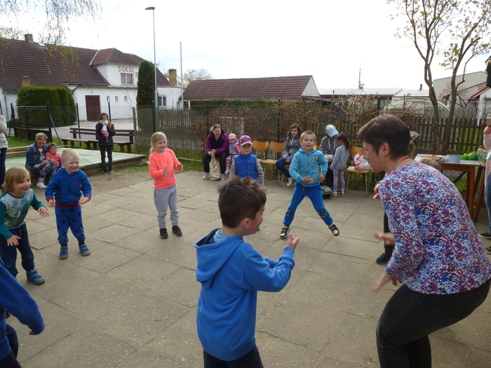 Ve středu odpoledne bylo v naší školce rušno, protože přišli rodiče dětí na společné velikonoční tvoření. Společně s paní učitelkou Evičkou a asistentkou Lenkou jsme vytvořily 3 stanoviště. Na prvním se z polystyrenového tácku vykrajovala a zdobila vajíčka, která se následně vybarvila akrylovou barvou. Na druhém stanovišti si děti vyzdobily zajíčka na dřevěnou kulatinu a maminky jim pomohly vše dobře přilepit tavnou pistolí. Na třetím stanovišti se pletla velikonoční pomlazka z vrbových proutků. Děti si vyrobené dekorace donesly domů a my děkujeme rodičům za malé občerstvení a krásně prožité odpoledne s našimi dětmi.