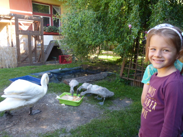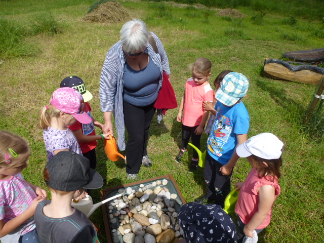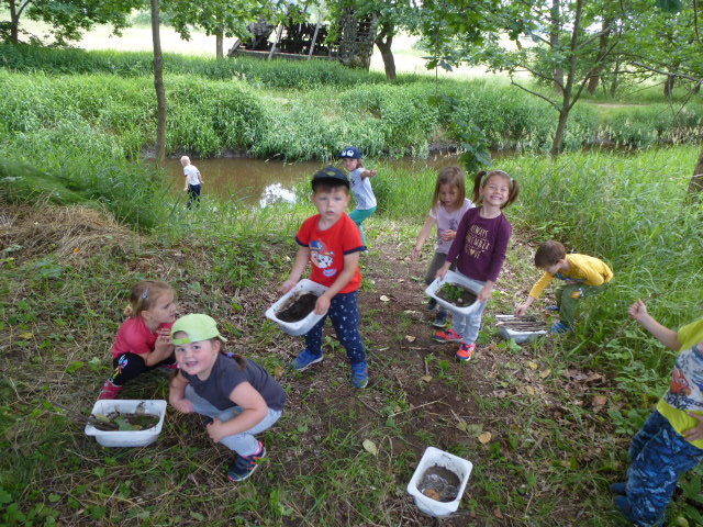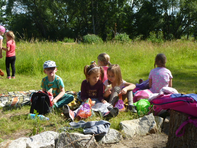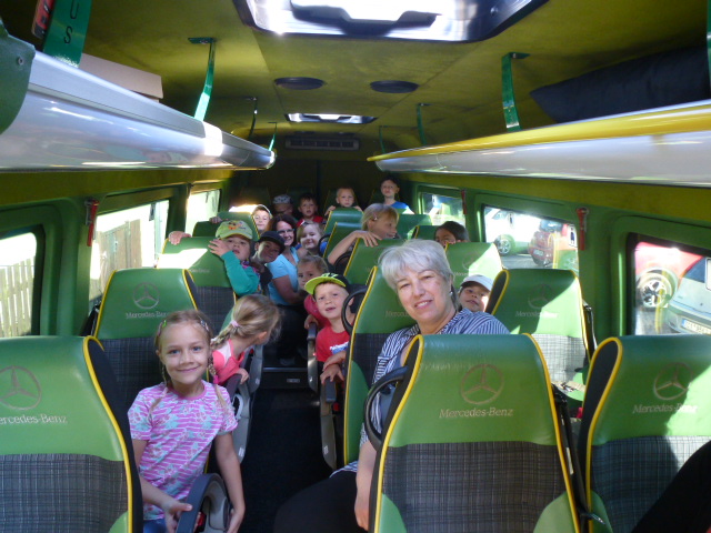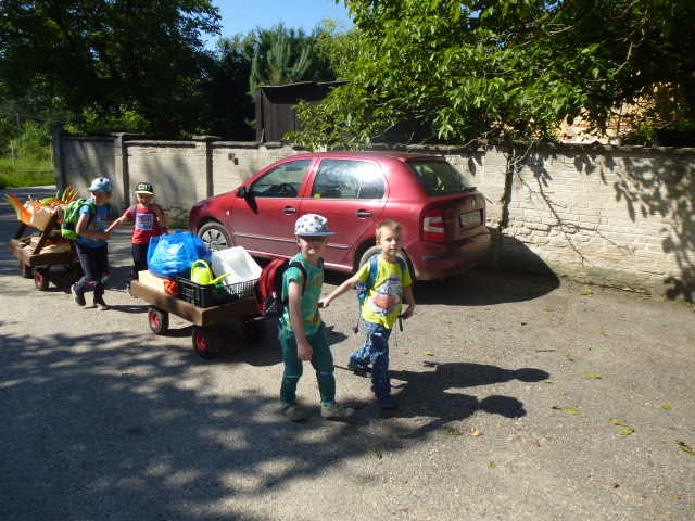 Ve středu 24.6. pro nás přijel zvláštní autobus. Byl celý zelený a docela malý. Tak akorát pro naší malou školičku :-). Autobus nás odvezl do Třeboně do záchranné stanice pro volně žijící zvířata. Přivítala nás paní Zuzana a provedla nás v části, kde mají ubytovaná zvířátka. Mezi plaňkami nás přivítalo malé danče, dále pak labuť, která měla bolavou nohu a malá labuťata. Poštolka, která byla na jedno oko slepá, liška, sovy, vydry. Po prohlídce zvířátek jsme prošly s dětmi do přírodní naučné zahrady. Vahadlem děti nabíraly vodu a nalévaly do dřevěných koryt s různými zákrutami, aby viděly jak teče voda. Druhá polovina se prohrabovala zeminou a zjišťovala, jaká zvířátka najdou v půdě. Po chvilce se skupinky vyměnily. Málem jsem zapomněla na největší zážitek...na KADIBUDKU :-)..proběhla alespoň prohlídka :-) Uteklo to jako voda a vracely jsme se zpátky do školky, kde už na nás čekala paní kuchařka s obědem.